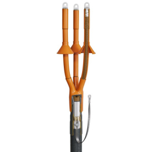Основные термоусаживаемые элементы муфты: перчатка, трубки жильной изоляции, концевые манжеты и жильные изоляторы выполнены из трекингостойкого материала кирпично-красного цвета